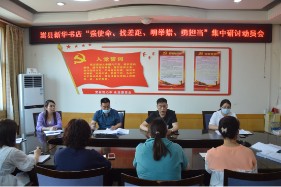 按照中共嵩縣縣委“強使命、找差距、明舉措、勇?lián)?dāng)”集中學(xué)習(xí)研討活動的安排部署,5月26日上午,嵩縣新華書店全體職工在黨員活動室,召開“強使命、找差距、明舉措、勇?lián)?dāng)”集中學(xué)習(xí)研討動員會,全體干部職工參加會議。