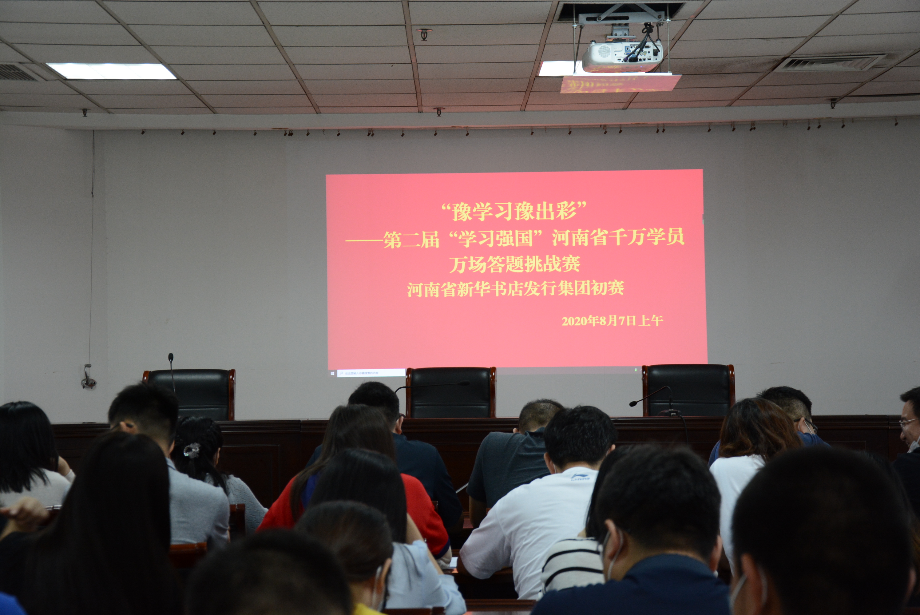 為深入貫徹落實(shí)習(xí)近平總書記關(guān)于加強(qiáng)學(xué)習(xí)、建設(shè)學(xué)習(xí)大國重要指示精神,建好、辦好、用好“學(xué)習(xí)強(qiáng)國”學(xué)習(xí)平臺(tái),進(jìn)一步提高廣大黨員干部群眾學(xué)習(xí)積極性,按照省委宣傳部組織開展“‘豫學(xué)習(xí)豫出彩’——第二屆“學(xué)習(xí)強(qiáng)國“河南省千萬學(xué)員萬場答題挑戰(zhàn)賽活動(dòng)的通知要求和中原出版?zhèn)髅郊瘓F(tuán)公司黨委的具體部署,發(fā)行集團(tuán)黨委于8月7日上午組織開展“豫學(xué)習(xí)豫出彩”——第二屆“學(xué)習(xí)強(qiáng)國”河南省千萬學(xué)員萬場答題挑戰(zhàn)賽發(fā)行集團(tuán)初賽,來自本部各支部的44位選手參加了比賽。