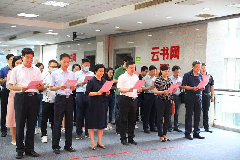 活動中,省委宣傳部文化企業(yè)黨建辦公室主任趙凱以“不忘崢嶸歲月、致敬繁華時代—老兵的情懷”為題講了一堂精彩的微黨課,回顧了人民軍隊成立的歷史及紅25軍在我省光榮的長征歷程;發(fā)行集團黨委書記亓新民介紹了新華書店紅色基因的歷史傳承和發(fā)展壯大的歷史沿革,闡釋了發(fā)行集團發(fā)揚“新華精神”,以黨建引領(lǐng)生產(chǎn)經(jīng)營所取得的高質(zhì)發(fā)展成效;全體黨員重溫了入黨誓詞,集體朗誦了詩歌《我是共產(chǎn)黨員》。