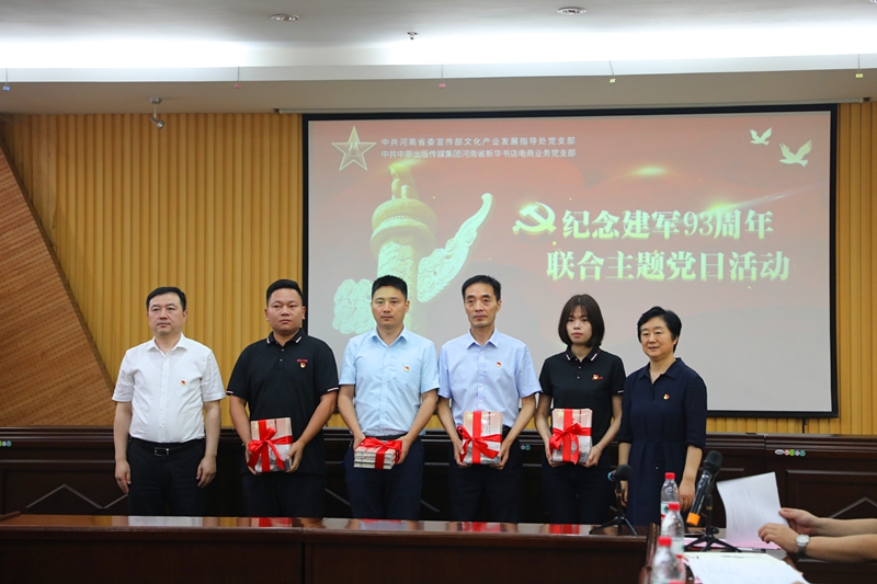 活動中,省委宣傳部文產(chǎn)處黨支部和發(fā)行集團電商業(yè)務(wù)黨支部聯(lián)合舉行了“黨組織共建單位”揭牌儀式,并為兩個支部的退伍老兵送上了節(jié)日慰問。