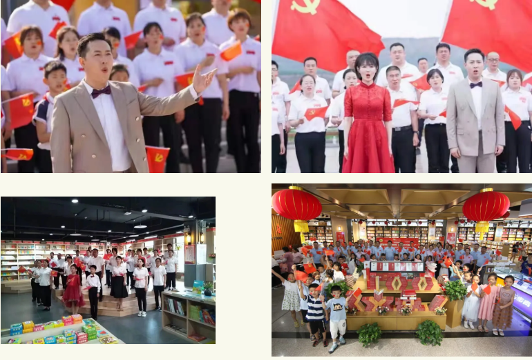 隨著熟悉的音符在黨旗下飄揚,活動現(xiàn)場來往的市民和群眾應(yīng)聲而歌,紛紛揚起手中的紅色旗幟隨著歌聲揮動,用深沉的熱愛唱出愛黨奮進的力量。這次快閃活動是全體新華人向黨的深情表白,以經(jīng)典歌曲謳歌黨的百年風(fēng)華、禮贊新時代新中國,以嘹亮歌聲彰顯新華書店風(fēng)采、表達愛黨愛國赤子情懷。