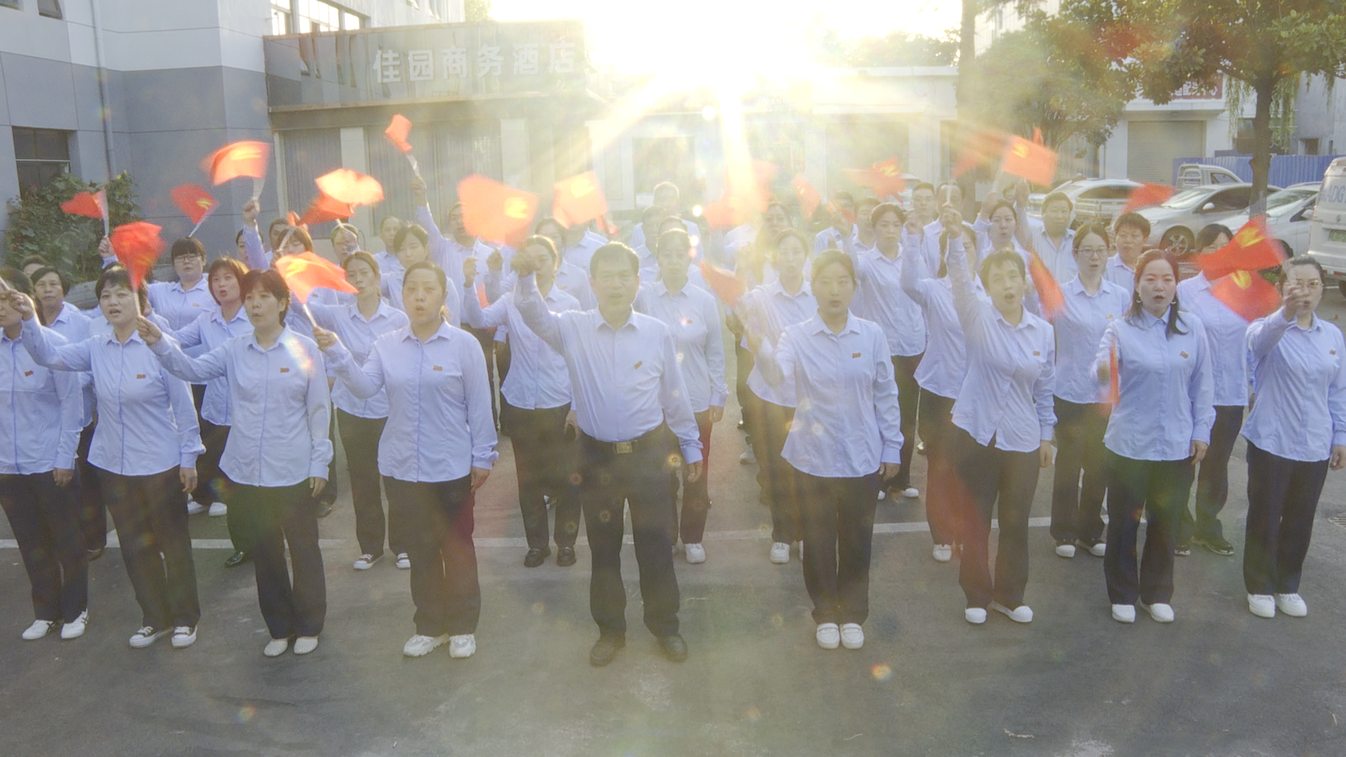 2021年是中國共產(chǎn)黨成立100周、中華人民共和國成立72周年,為激發(fā)愛國熱情,凝聚奮進(jìn)力量,展現(xiàn)新華風(fēng)采。10月1日清晨6點(diǎn)30分,登封市店總經(jīng)理崔朝軍帶領(lǐng)全體干部職工在辦公樓停車場集合完畢,開展“賀國慶、展風(fēng)采”慶;顒(dòng)。