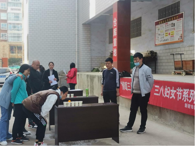 為迎接“三八婦女節(jié)”來臨,活躍節(jié)日氣氛,豐富職工的文化生活,增強(qiáng)職工的凝聚力。3月8日下午,新密市店組織開展慶“三八”文體活動。活動有拔河比賽、吹乒乓球、跳繩、踢毽子、跳棋、象棋六個項目。