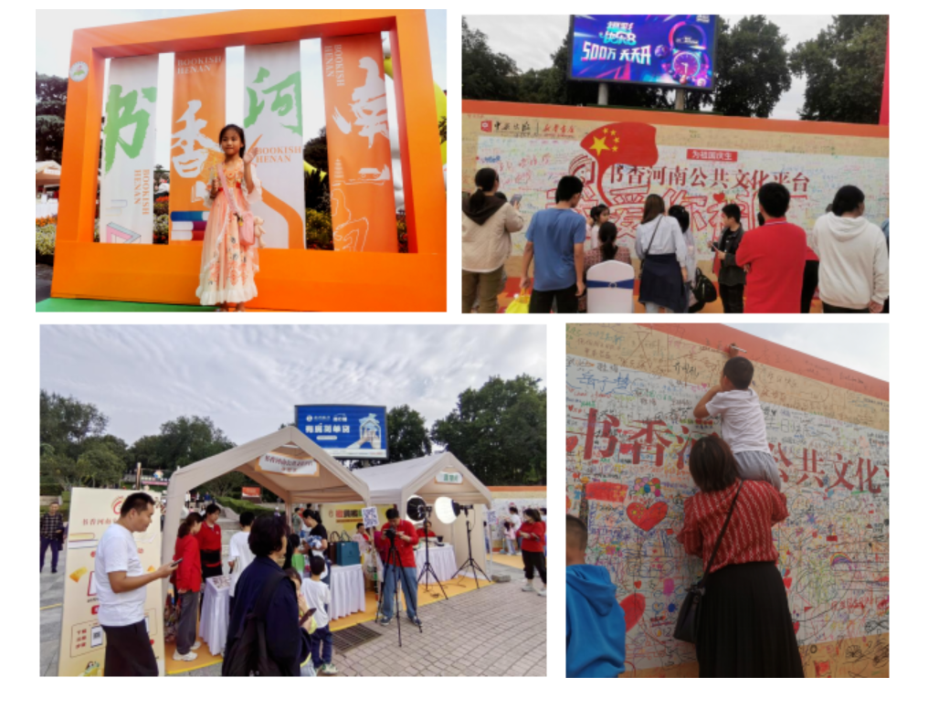 在活動主會場鄭州市紫荊山公園,公益捐贈、圖書交換、非遺文創(chuàng)、愛國彈幕、詩詞打卡、藏書票集章等互動體驗活動打卡超1萬人次,現(xiàn)場游覽書展7.3萬人次,線上平臺瀏覽互動超2000萬人次;顒又,書香河南公共文化平臺得到有效推廣,新增用戶12156人,總用戶量7.18萬,瀏覽量84萬次。