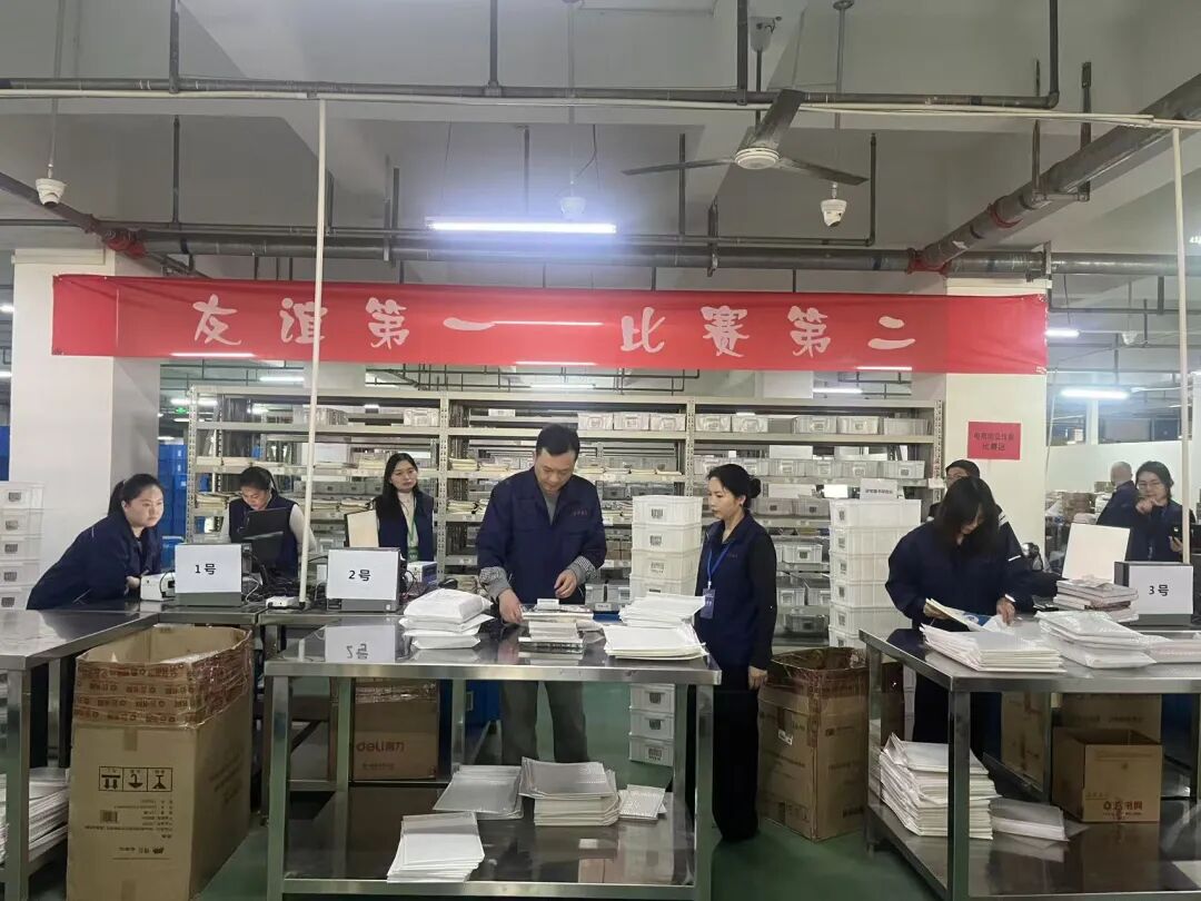 賽場(chǎng)上,選手們精神飽滿、奮勇爭先,構(gòu)成了一副“比學(xué)趕超”的生動(dòng)畫面。站駕叉車計(jì)時(shí)賽現(xiàn)場(chǎng),參賽選手沉著操控,精準(zhǔn)避開障礙、控制車速,在狹窄通道內(nèi)靈活轉(zhuǎn)向,既展現(xiàn)了嫻熟的駕駛技能,更凸顯了“安全第一”的作業(yè)理念;手工包裝團(tuán)體計(jì)時(shí)賽現(xiàn)場(chǎng),參賽團(tuán)隊(duì)手法嫻熟、分工明確、配合默契,不斷刷新紀(jì)錄,實(shí)現(xiàn)“速度與質(zhì)量”雙優(yōu)雙提升;電商崗位技能賽現(xiàn)場(chǎng),參賽選手精準(zhǔn)操作,同時(shí)自如切換多個(gè)系統(tǒng),細(xì)致快速完成打包作業(yè),展現(xiàn)出極高的職業(yè)素養(yǎng)及精湛的手工作業(yè)能力。