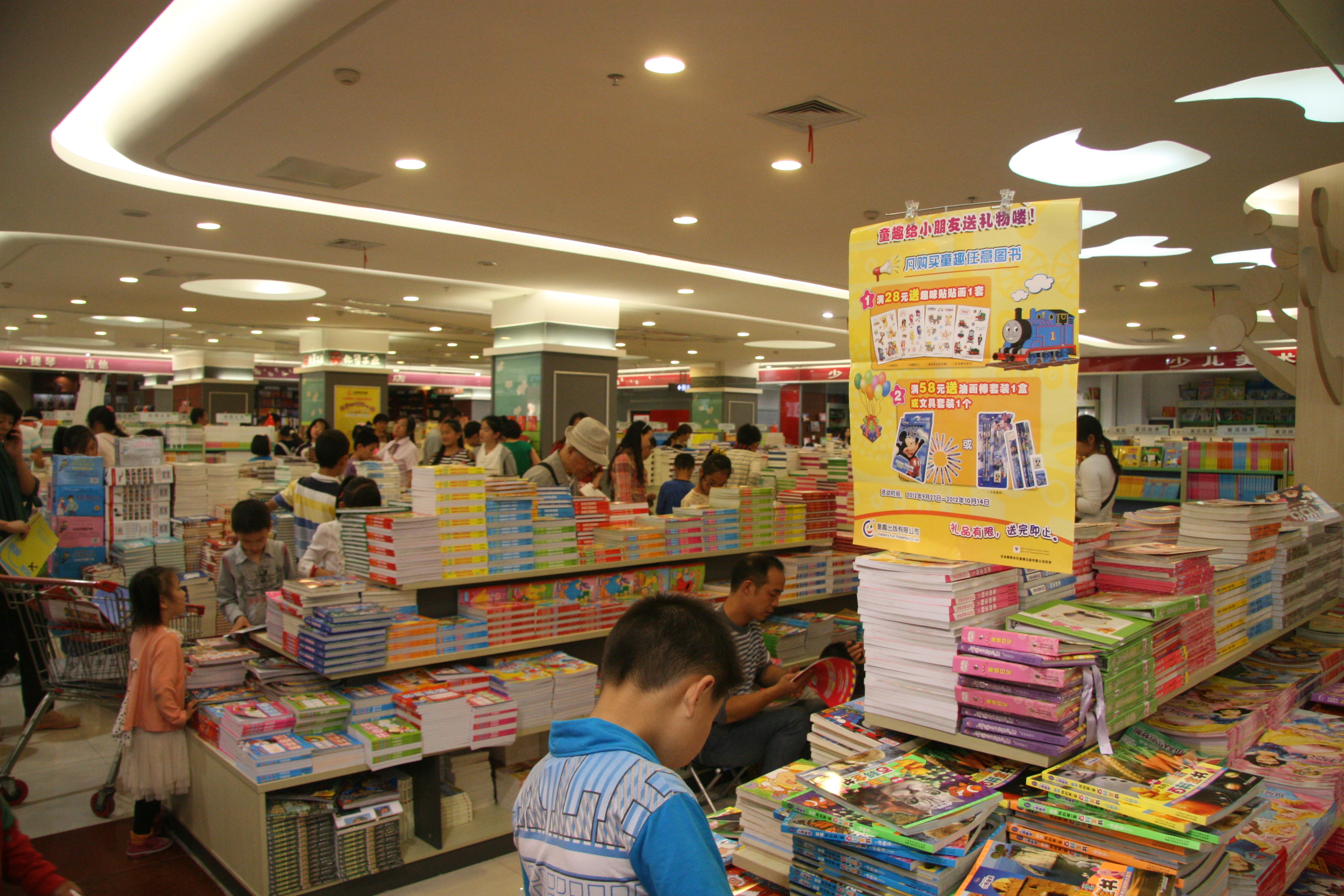 專題展臺聚攬人。節(jié)日期間,為豐富廣大讀者假期生活,鄭州購書中心賣場內逐層設立了專題展臺:一樓開設了“讀書興國 幸運六三”的主題活動,凡年滿63歲的讀者可憑身份證獲取指定圖書一本,與祖國一起同慶63歲華誕;二樓布置了“愛我中華—國富安康和諧家”生活保健暢銷圖書展臺,倡導健康生活理念;三樓設立了“書海揚帆 品味人生”科普文教圖書展銷,渲染出知識強國的文化氛圍;四樓搭建起“書香益趣 共享閱讀”展臺,精心布置了喜羊羊、美羊羊、憤怒的小鳥等卡通造型,吸引著小讀者駐足選購圖書;五樓的“科技興國 與國同慶”主題,強調了科教興國的深遠影響力。此外,大學路店和農(nóng)業(yè)路店也依據(jù)自身賣場特點搭設不同類別圖書展臺。各專題展臺的設立不僅為賣場營造出濃郁的節(jié)日氛圍,也吸引了眾多讀者的眼球,讀者們在展臺前紛紛拍照留念,并爭先選購圖書。