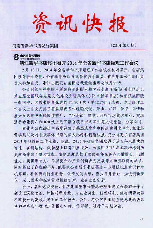 來源:河南省新華書店發(fā)行集團有限公司  作者:河南省新華書店發(fā)行集團有限公司  發(fā)布時間:2014/2/27 9:09:51  閱讀次數(shù):11321