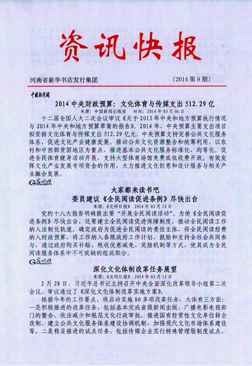 來源:河南省新華書店發(fā)行集團有限公司  作者:河南省新華書店發(fā)行集團有限公司  發(fā)布時間:2014/3/14 10:46:22  閱讀次數(shù):13122