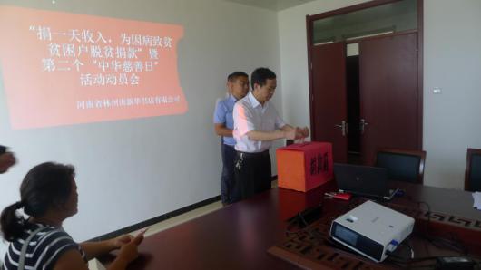 為促進(jìn)社會(huì)慈善公益事業(yè)健康發(fā)展,進(jìn)一步弘揚(yáng)樂(lè)善好施、扶貧濟(jì)困的中華民族傳統(tǒng)美德,近日,林州市新華書(shū)店積極響應(yīng)市委、市政府號(hào)召,組織公司干部職工召開(kāi)“捐一天收入,為因病致貧貧困戶(hù)脫貧捐款”暨第二個(gè)“中華慈善日”活動(dòng)動(dòng)員會(huì)。干部職工一致響應(yīng),紛紛慷慨解囊,踴躍捐助,掀起了捐款熱潮。經(jīng)過(guò)清點(diǎn)統(tǒng)計(jì),該店共籌集善款6500元,已全部送交市慈善總會(huì),主要用于健康扶貧和在全市范圍內(nèi)開(kāi)展安老、撫孤、助醫(yī)、助教、濟(jì)困等慈善救助活動(dòng)。