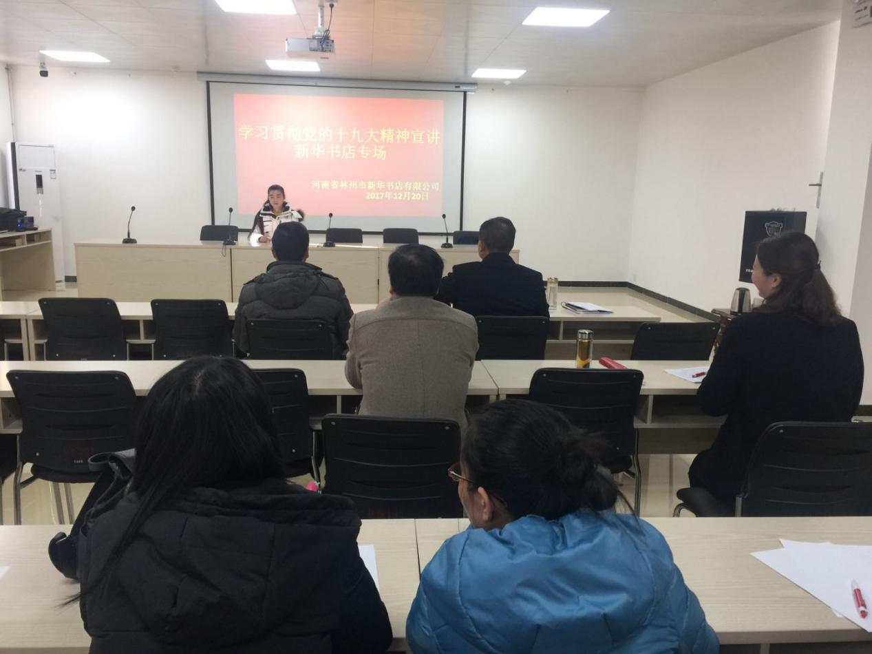 12月20日,林州市新華書店召開學習貫徹黨的十九大精神宣講報告會,邀請市委宣講團成員、市委黨校教師張路為公司全體干部職工作宣講。公司黨支部書記、經理劉進明主持會議。