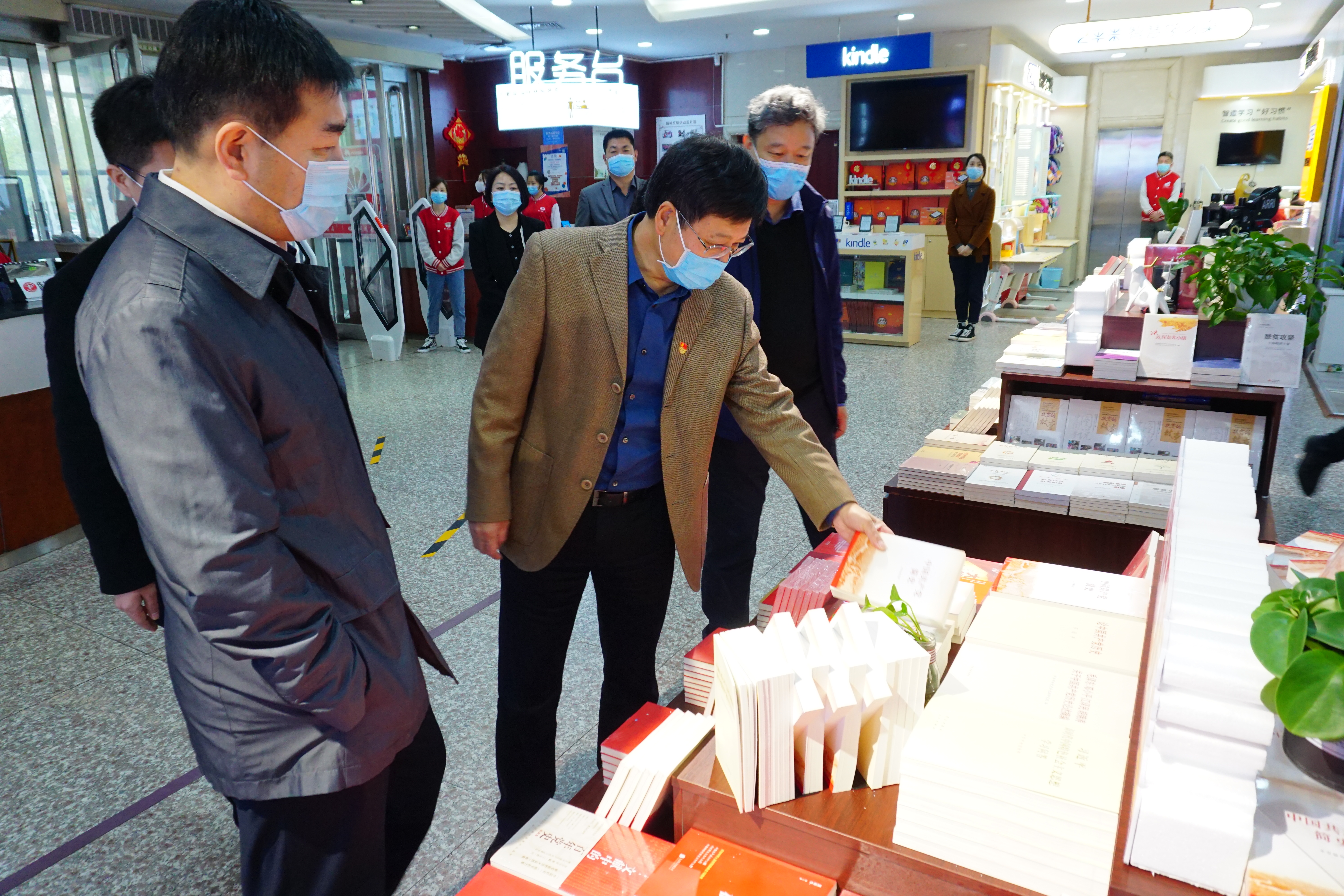 活動期間,譚福森一行參觀了“慶祝中國共產(chǎn)黨成立100周年”主題書展。河南省新華書店作為黨的宣傳思想文化和意識形態(tài)的重要陣地,主動融入全黨黨史學習教育,統(tǒng)籌線上線下渠道,重視宣傳發(fā)行工作,積極深入農村、社區(qū)、學校、機關、企業(yè)、軍營開展學習圖書供應服務,實現(xiàn)了全省各地黨政機關黨員全覆蓋、基層黨組織全覆蓋和農家書屋全覆蓋,推動黨史學習教育深入基層、深入群眾、深入人心,為滿足全省人民學習需要做出了積極貢獻。