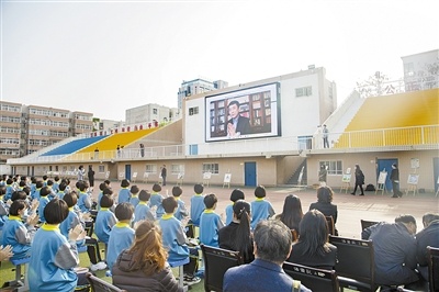 在視頻播放北京大學(xué)風(fēng)光旖旎的校園春景的背景下,該校拉開了“同讀紅色《火印》,共上思政大課——曹文軒給市十中師生的一堂閱讀課”活動序幕。