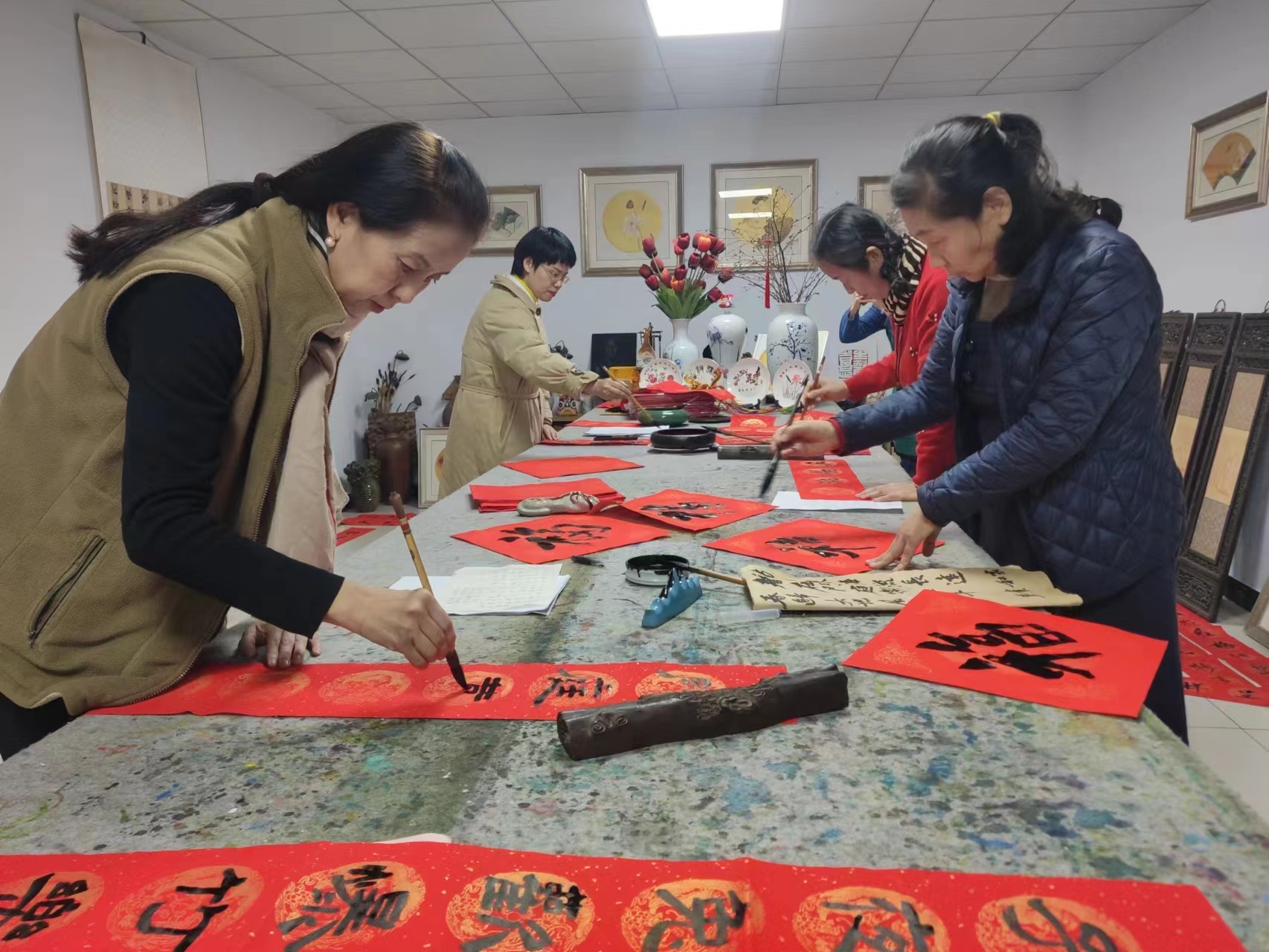 河南省各級新華書店聯(lián)系當?shù)匚穆?lián)、書法家協(xié)會等群團組織,邀請書法家、書法愛好者等在門店或者城市廣場、街道社區(qū)等人員密集的地方,開展“名家楹聯(lián)春·書墨香送!惫鎸懰痛郝(lián)活動。除了公益寫送春聯(lián)活動之外,還特別邀請傳統(tǒng)民俗藝人現(xiàn)場展演木版年畫、捏面人制作、翻紙花制作、草編工藝品等非遺文化工藝。