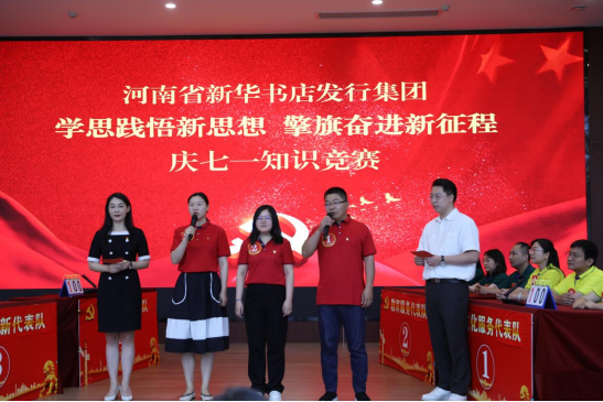 在慶祝中國共產(chǎn)黨102周年華誕之際,河南省新華書店發(fā)行集團(tuán)黨委于7月6日隆重舉辦“學(xué)思踐悟新思想 擎旗奮進(jìn)新征程”慶“七一”知識競賽,發(fā)行集團(tuán)7個黨支部選派選手組隊(duì)參加比賽。集團(tuán)公司黨委編輯委員會辦公室主任李志強(qiáng)到場指導(dǎo)。