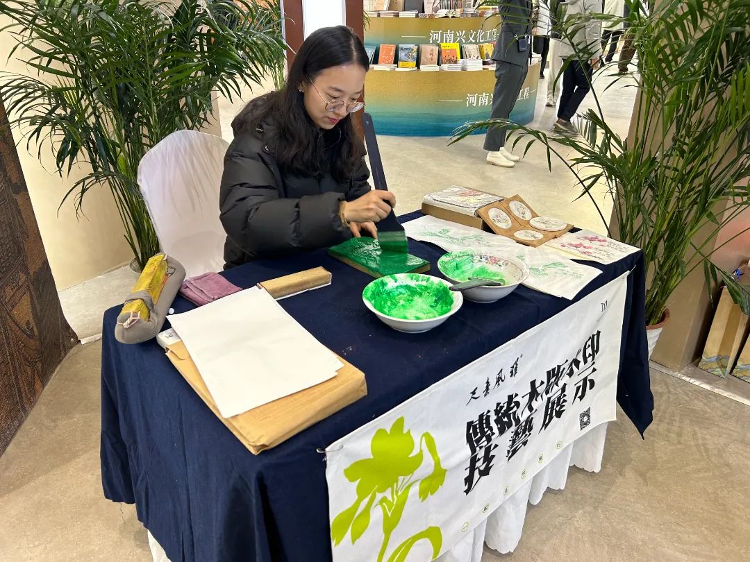 此次大會設置文脈書香展和河南古籍展。文脈書香展區(qū)整體采用“天圓地方、天地之中”的設計思路,設置了反映習近平新時代中國特色社會主義思想和黃河文化、興文化工程的圖書主題展區(qū),并以歷史為序,設置文脈傳承區(qū),包括“華夏曙光、漢唐輝煌、大宋夢華、明清風韻、紅色賡續(xù)”五大板塊,集中展示700種反映中華優(yōu)秀文化傳承創(chuàng)新的圖書。在五大主題板塊周邊設有豫版精品圖書展區(qū)和數(shù)字展區(qū),分別展示數(shù)百種豫版精品圖書,以及中原出版?zhèn)髅郊瘓F的融合出版創(chuàng)新項目、文創(chuàng)產(chǎn)品等,同時還組織書法、拓印、掐絲琺瑯、《山海經(jīng)中國神獸圖鑒》AR沉浸式體驗等多項互動活動。整個展區(qū)動靜結(jié)合、虛實相融,既讓讀者和觀展群眾感受到良好的閱讀氛圍,又能感受到現(xiàn)代科技賦能的新場景、新體驗。