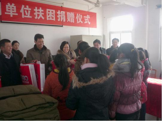 2012年12月31日,在新年即將之際,中共泌陽(yáng)縣委組織部部長(zhǎng)和宣傳部副部長(zhǎng)帶領(lǐng)由泌陽(yáng)縣國(guó)稅局、泌陽(yáng)縣店、移動(dòng)公司三家組成的文明單位扶困捐贈(zèng)小組,前往泌陽(yáng)縣高邑鄉(xiāng),對(duì)留守兒童進(jìn)行了扶困捐贈(zèng)活動(dòng)。嚴(yán)寒冬天,溫情融融,扶困小組把幾十套棉衣、棉被和127冊(cè)《新華字典》親自送到留守兒童的手中,讓留守貧困兒童深深感受到春天般的溫暖。