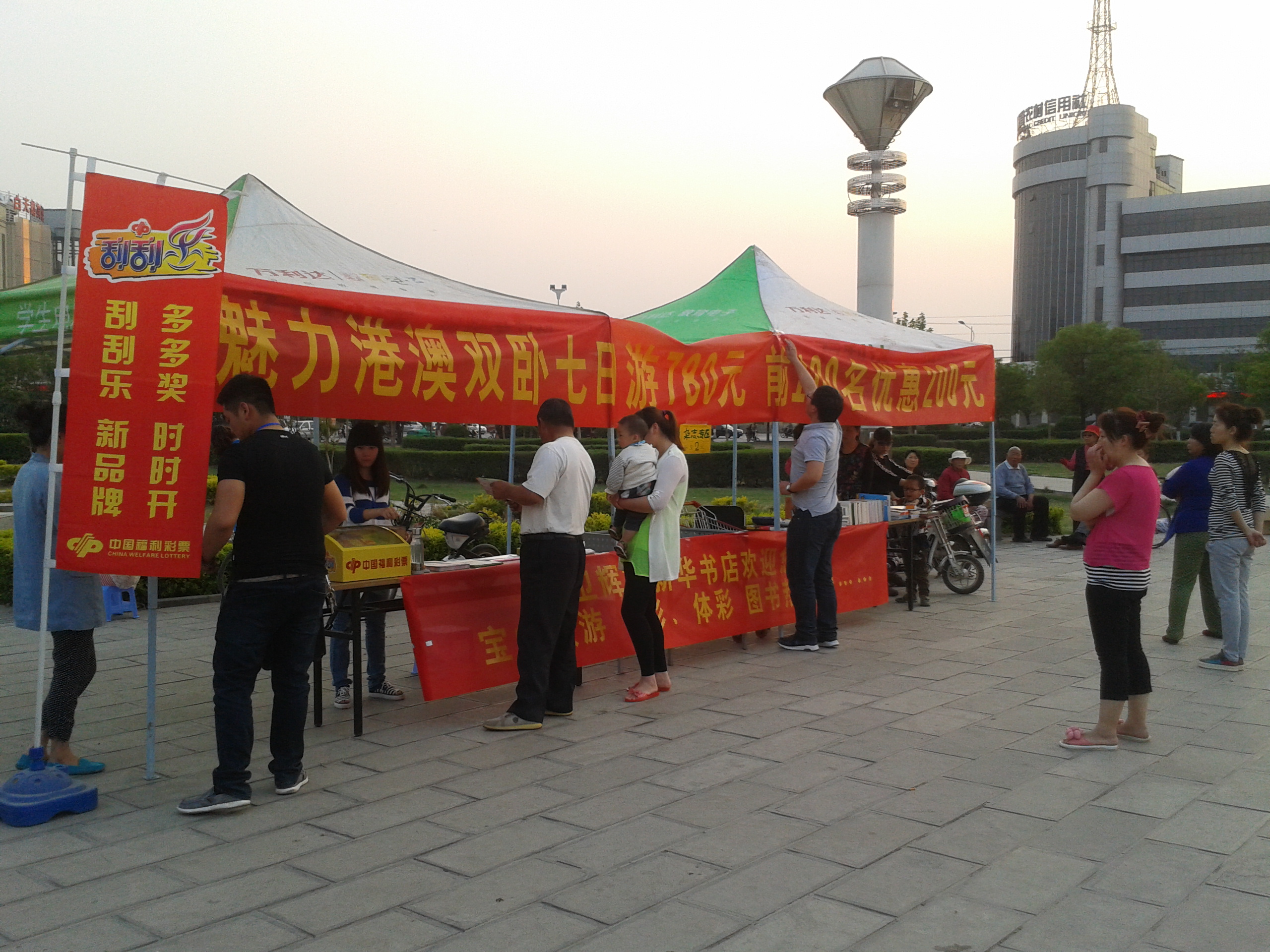 為紀(jì)念五四青年節(jié),渲染“五·四”精神,提高新華品牌知名度,5月4日,衛(wèi)輝市店特別策劃了一場(chǎng)大型宣傳活動(dòng),展示新推出的寶中旅游、福利、體育彩票等社會(huì)服務(wù)功能以及各類(lèi)熱銷(xiāo)圖書(shū)。