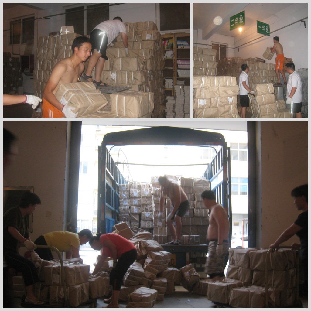 目前,2013秋季教材的發(fā)運(yùn)工作已經(jīng)步入了高峰期,為了達(dá)成“課前到書,人手一冊(cè)”的目標(biāo),衛(wèi)輝市店業(yè)務(wù)科全體員工加班加點(diǎn),犧牲節(jié)假休息時(shí)間,頂著高溫?zé)崂嘶蛘弑┯暌u擊等惡劣天氣,全身心投入到教材、教輔的發(fā)運(yùn)工作中。雖然大家臉頰上冒著汗珠,甚至有的光起了膀子,但樂(lè)此不疲的勁頭展現(xiàn)了朝氣蓬勃、團(tuán)結(jié)向上的精神面貌。據(jù)該店員工表示,等到中小學(xué)生開(kāi)學(xué)時(shí),手捧一本本嶄新的教材,滿心幸福的笑聲充盈著整間教室,我們?cè)倏嘣倮垡彩侵档玫模?