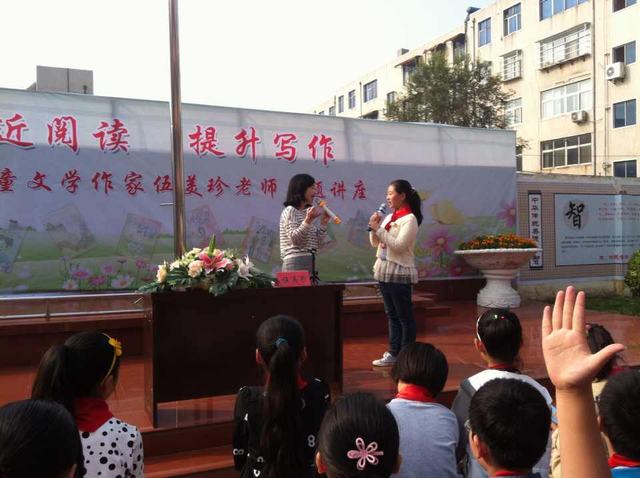 國慶節(jié)期間,登封市店特邀著名兒童作家伍美珍在登封市北街小學(xué)隆重舉辦了簽售活動,在活動現(xiàn)場,數(shù)千師生聆聽了伍美珍寫作之路,并與伍美珍進行了親密互動。本次活動共簽售《番茄土豆練練看》《糖葫蘆也瘋狂》《自命不凡的天才》《阿呆穿越筆記》《我們班的小童星》系列圖書1400余冊。