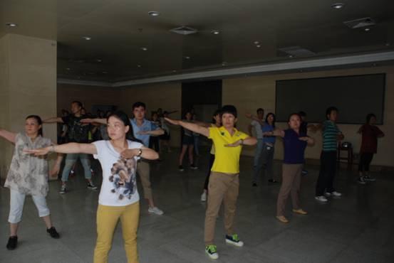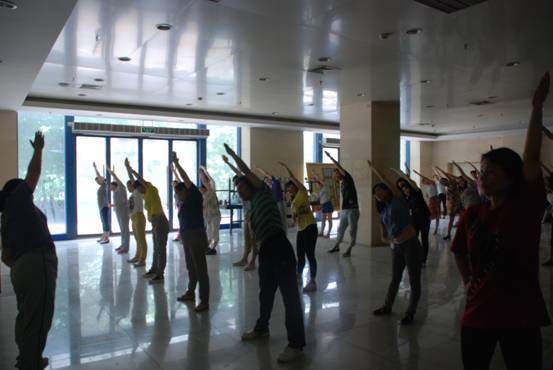 發(fā)行集團(tuán)公司在開展黨的群眾路線教育實踐活動中,積極響應(yīng)廣大職工群眾訴求,豐富職工文化生活,認(rèn)真貫徹落實全民健身計劃,從7月份起,組織本部員工開展了工間操活動,工間操選用的國家體育總局正式發(fā)布的第九套廣播體操。此項活動得到了廣大職工的積極響應(yīng)和熱情參與,大家就近在走廊或辦公室等地,在輕快優(yōu)美的旋律下,認(rèn)真按標(biāo)準(zhǔn)做好每一個動作,舒展四肢、鍛煉身體,消除亞健康狀態(tài)。通過開展工間操活動,增進(jìn)了廣大職工身心健康,削除了疲勞,提高了工作效率,也培養(yǎng)了員工的團(tuán)隊精神,營造了和諧健康的企業(yè)文化氛圍。