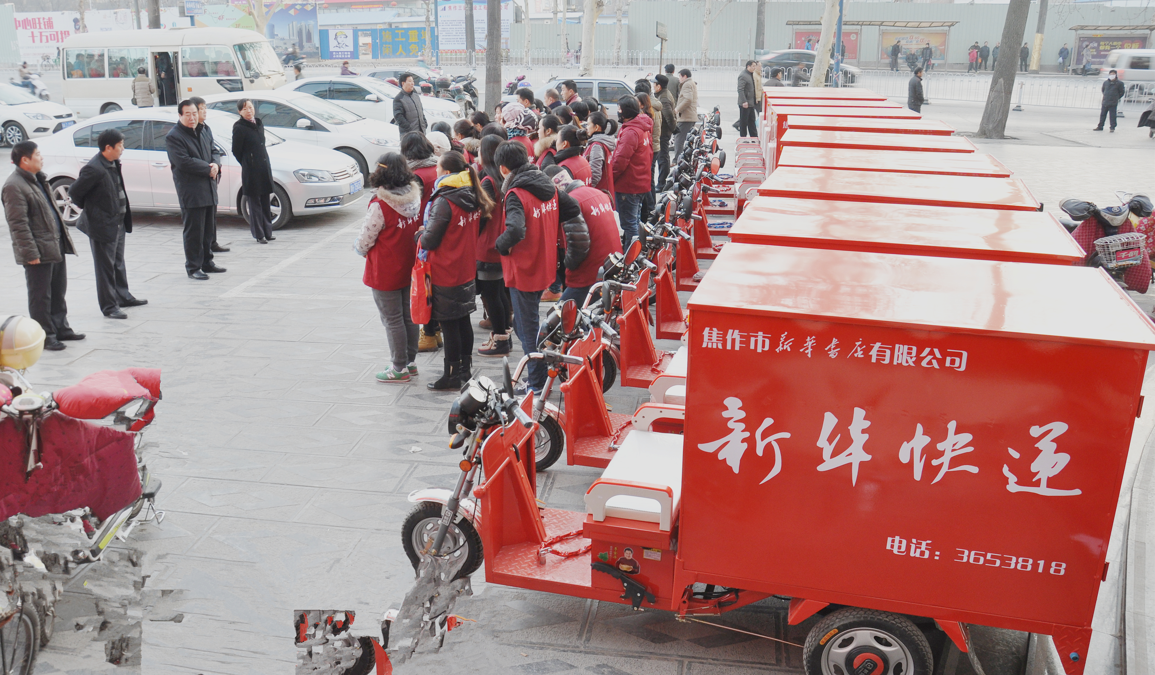 1月9日,十輛紅色的電動(dòng)三輪車(chē)承載著4萬(wàn)多份焦作廣播電視報(bào)駛向城市的大街小巷,焦作市新華書(shū)店精心打造的“新華快遞”正式亮相。