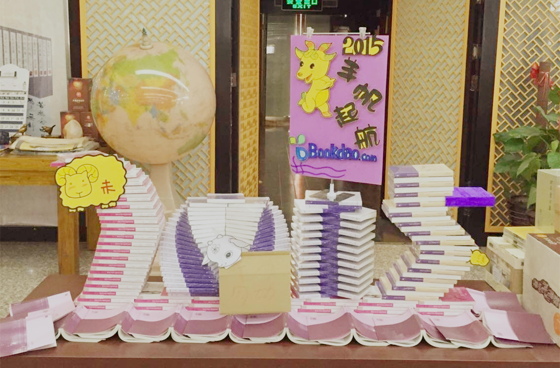 由百道網(wǎng)主辦的2015書(shū)店主題陳列大賽在各實(shí)體書(shū)店拉開(kāi)帷幕,中原圖書(shū)大廈積極參與,針對(duì)“2015站在風(fēng)口上更有未來(lái)”、“2015做更好的自己”、“2015送孩子一本好書(shū)”、“帶一本好書(shū)到2015”四個(gè)主題,精挑細(xì)選優(yōu)質(zhì)圖書(shū)品種的同時(shí),書(shū)花造型上也別出心裁。通過(guò)展臺(tái)陳列、展架陳列,創(chuàng)作了“羊羊得意”、“羊帆起航”等新穎別致的圖書(shū)造型,其中“羊羊得意”登上百道網(wǎng)首頁(yè)。把好書(shū)和好賣(mài)的書(shū)以最好的方式呈現(xiàn)在書(shū)店,是書(shū)店人的夢(mèng)想與追求,飽滿的創(chuàng)作熱情和靈動(dòng)的創(chuàng)新思維,是實(shí)現(xiàn)這一理想的不竭動(dòng)力。