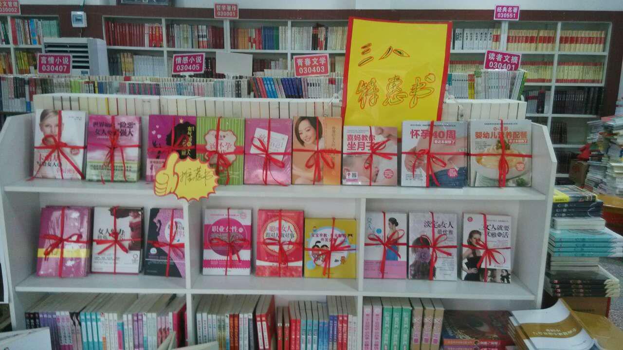 在喜鬧元宵過后,又迎來“三八”婦女節(jié),鎮(zhèn)平縣店搶抓銷售時機(jī),針對女性群體推出一系列優(yōu)惠促銷活動;顒訛槠谌欤珗鰣D書均為八五折優(yōu)惠,并通過賣場精美溫馨的圖書造型和關(guān)愛女性健康、女性養(yǎng)生保健、女性美容等專題書展,吸引了大量讀者關(guān)注和選購,門市銷售得到大幅提升。