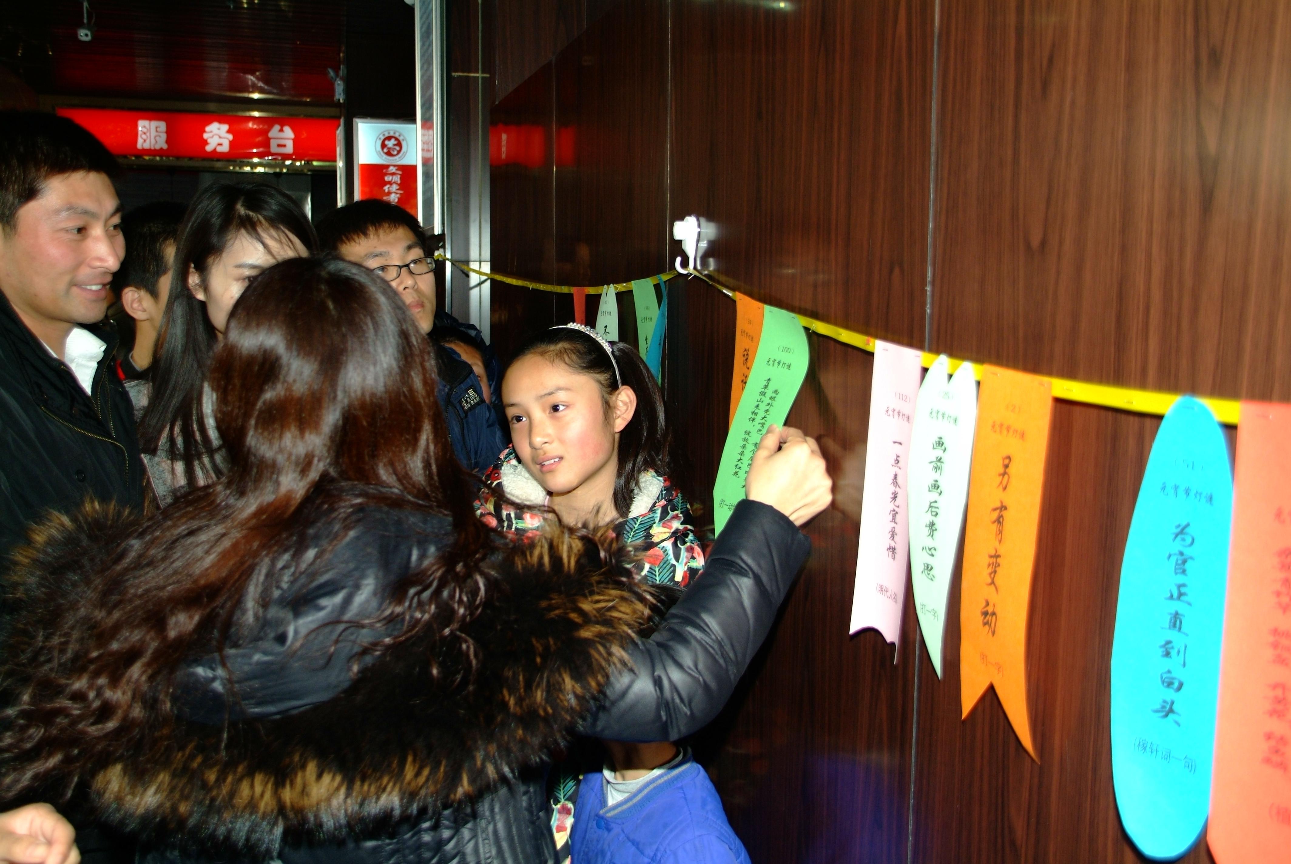 活動現(xiàn)場設(shè)置了100余幅謎面,選用的謎語內(nèi)容集知識性、趣味性于一體,既貼近生活,又充滿文化色彩,謎語形式豐富多樣,獎品新穎,極大地拉近了書店與讀者的距離。許多小讀者在家長的陪伴下踴躍參加,他們或駐足思考,或與家長討論。猜對燈謎的人,喜悅之情溢于言表,猜錯的人也毫不氣餒,越戰(zhàn)越勇。每個人臉上都堆滿了快樂的笑容,現(xiàn)場氣氛熱烈。僅半個小時,150份獎品盡被讀者收入囊中。