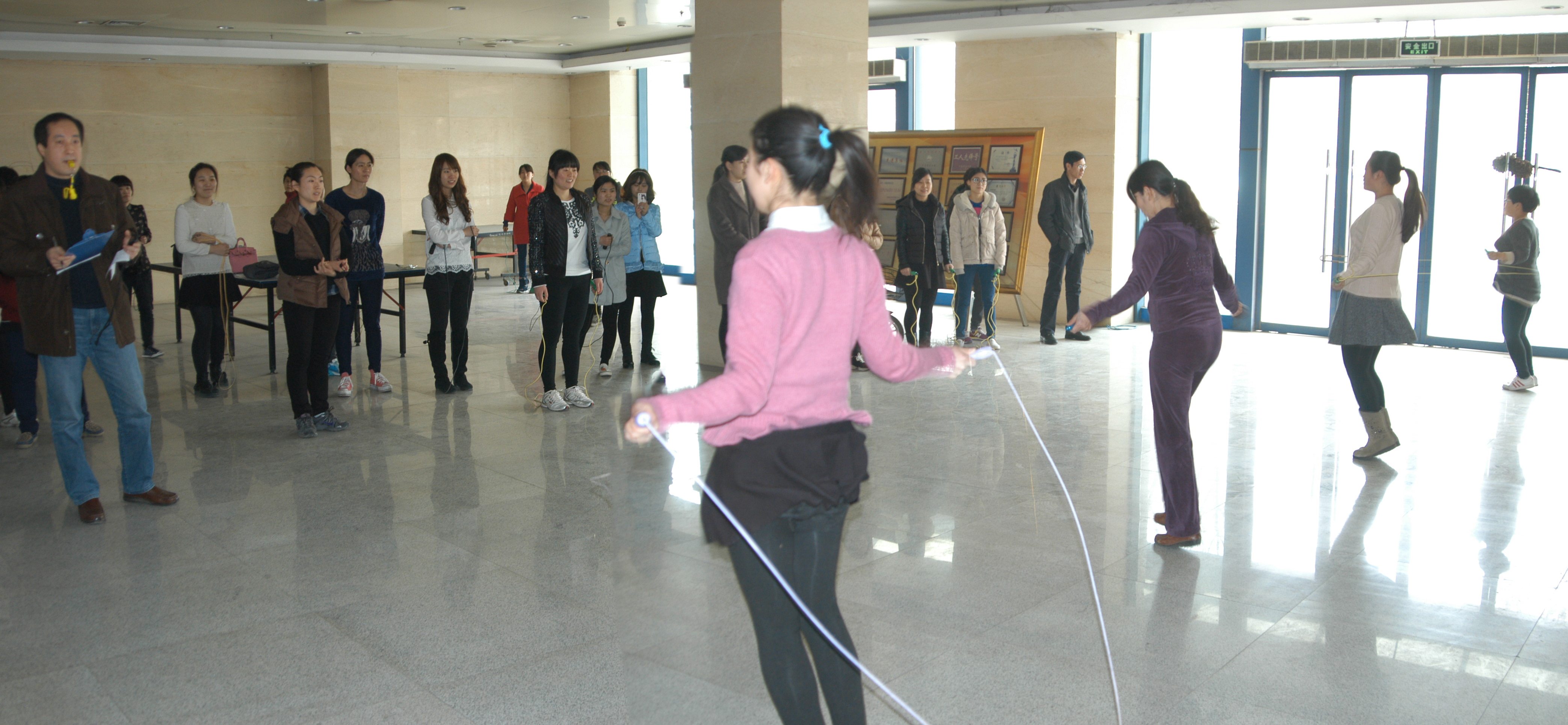 為紀(jì)念“三八”國際婦女節(jié)的到來,全面貫徹黨的婦女政策,營造濃郁的節(jié)日氣氛,豐富女職工的業(yè)余文化生活,增強(qiáng)企業(yè)凝聚力,激勵(lì)廣大女職工以飽滿的熱情和最佳的工作狀態(tài)在本職崗位上建功立業(yè),發(fā)行集團(tuán)工會(huì)在3月2日至3月6日組織舉辦了女職工慶“三八節(jié)”跳繩比賽活動(dòng)。